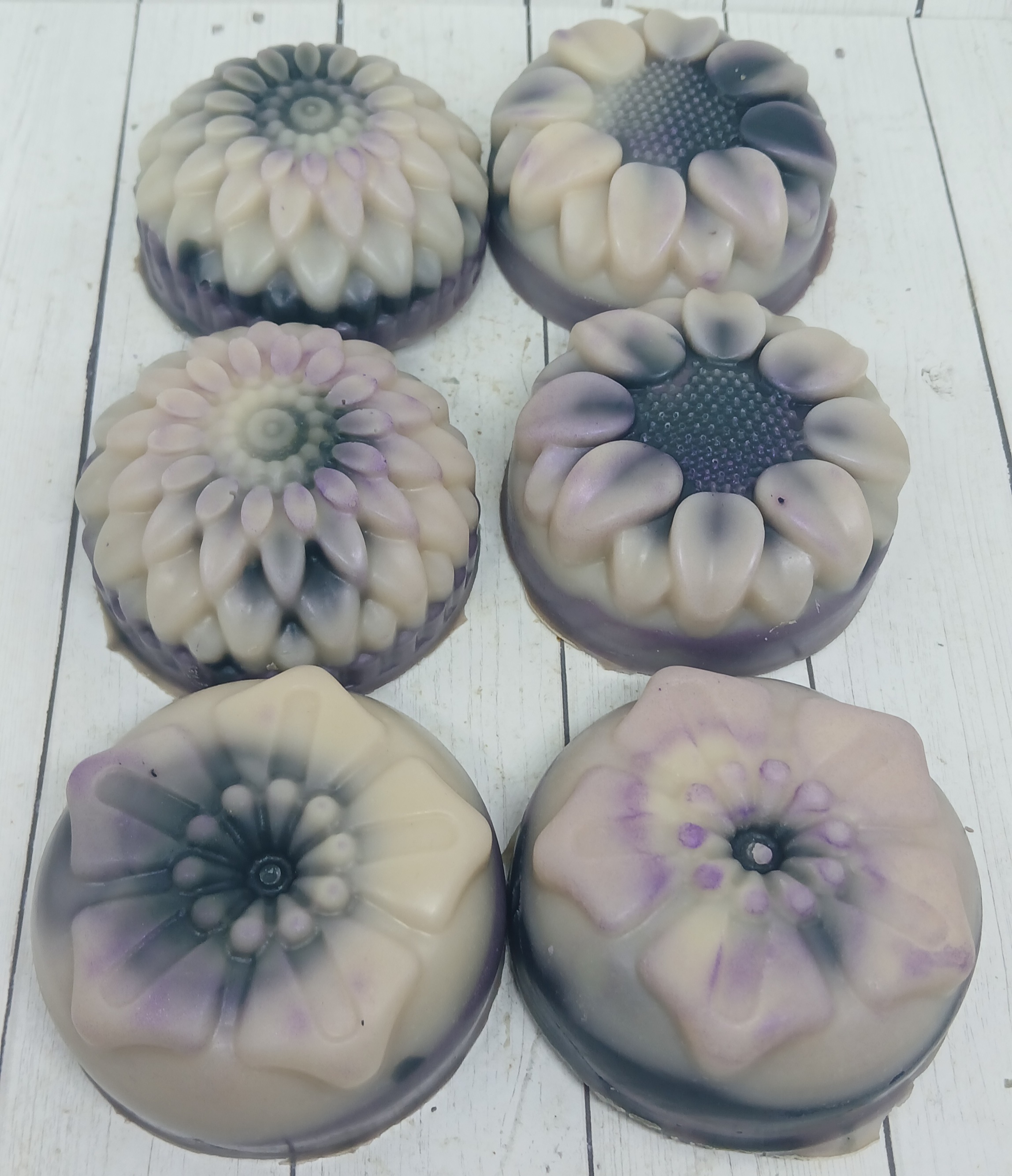 Ingredients: Olive oil, coconut oil, avocado oil, shea butter, castor oil, fragrance oil, natural colorants (activated charcoal, cocoa powder), sodium hydroxide (saponifying agent).