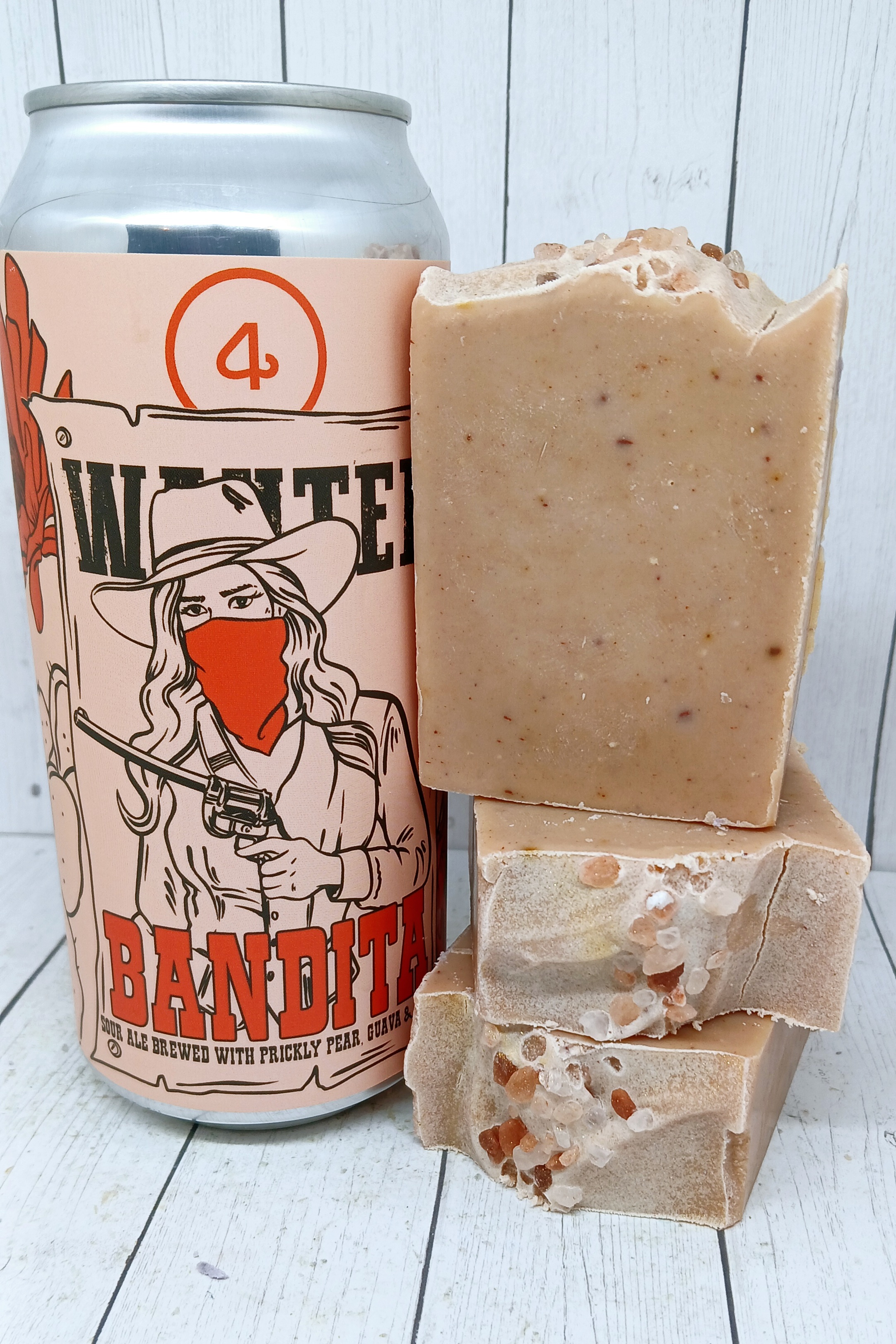 Inspired by Four Noses "Bandita" sour ale, this soap is a true taste of summer in a bar. The blend of prickly pear, guava, and pink salt captures the essence of a tropical vacation, offering a refreshing escape every time you lather up. The soft pink hue, created with a mix of pink kaolin and red Brazilian clays, mirrors the vibrant, sun-kissed glow of the tropics.