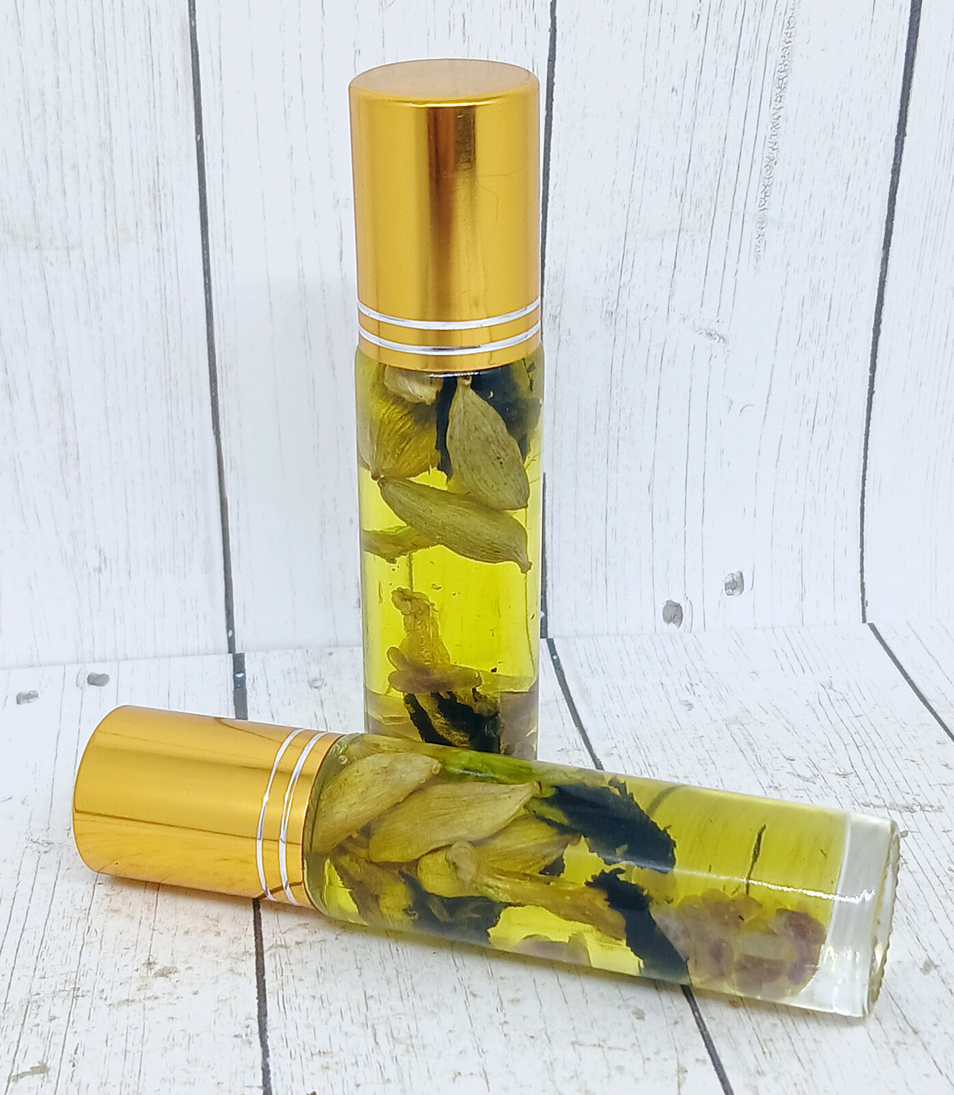 Ingredients: Rose infused jojoba oil, essential oil blend (patchouli, cedarwood, lemon, lavender, clove, rose flower extract), rose petals.