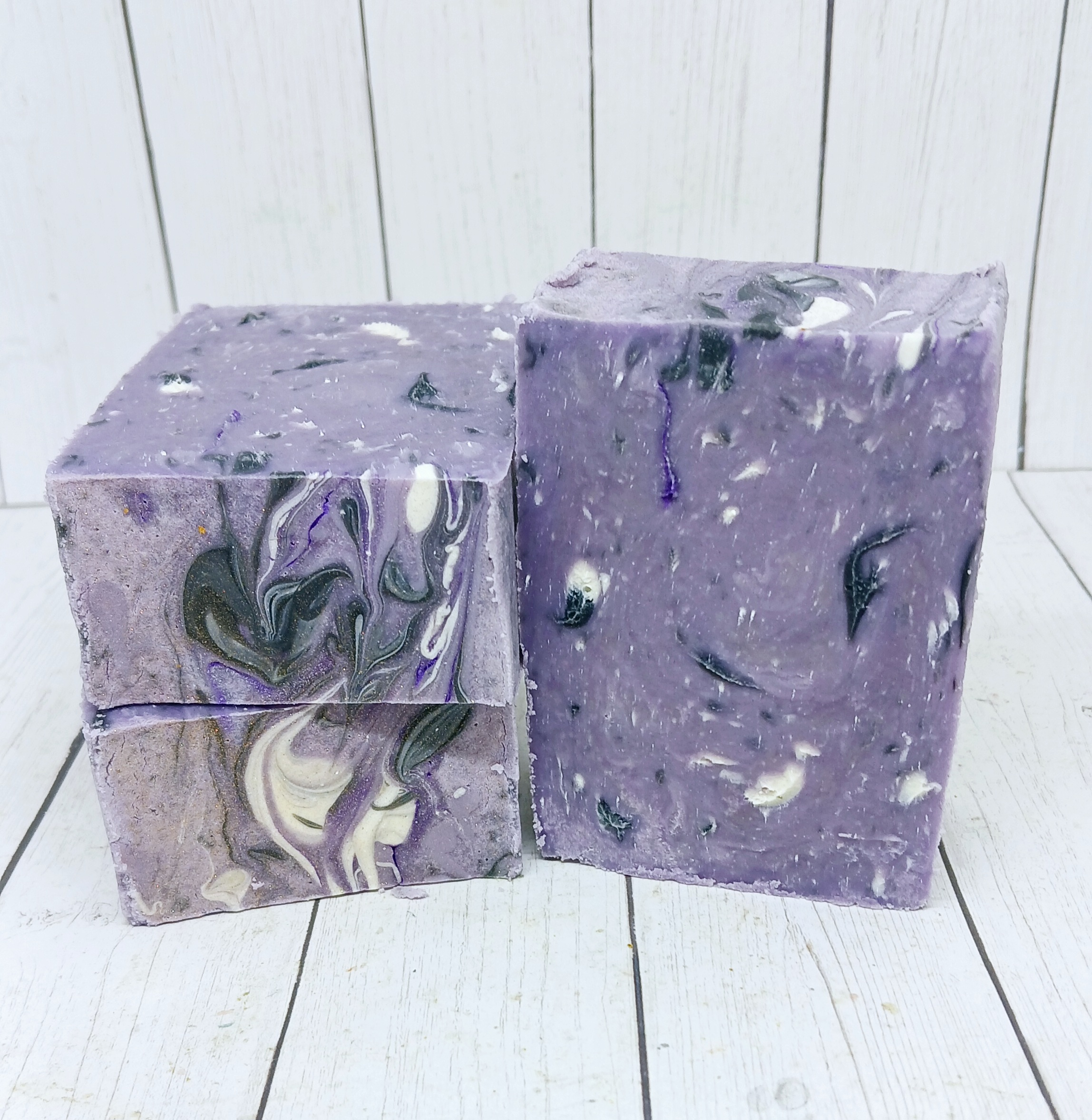 Colored naturally with indigo root and purple mica, each bar captures the dreamy glow of moonlight and twilight shadows. The scent is a sweet yet sultry blend of delicate florals and fruits, kissed with juicy pear and agave, layered over soft marine notes and a powdery base of dark musk and amber. A whisper of Italian lemon essential oil brightens the fragrance, adding a fresh, subtle sparkle.