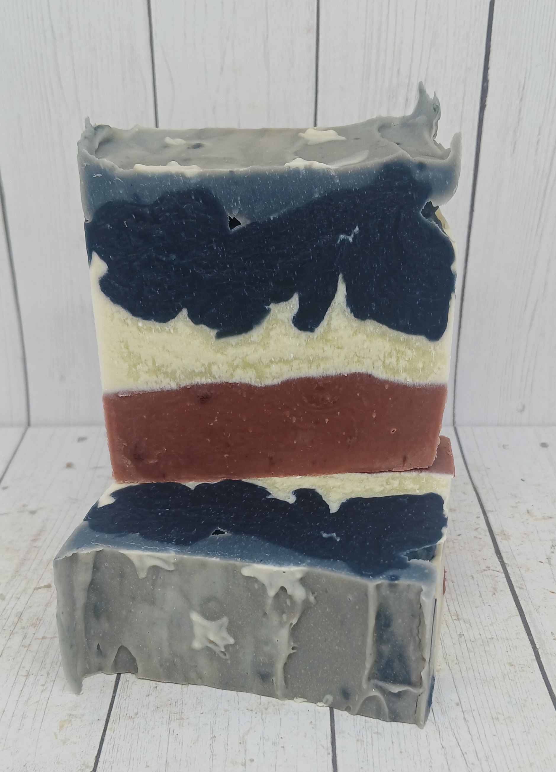 Celebrate strength, freedom, and grounding energy with our American Spirit Soap — a handcrafted tribute to timeless resilience and inner calm. Each bar is artfully colored with indigo root and red clay, creating a rich, earthy blend of deep blue and rustic red tones, and topped with delicate stars for a patriotic, celestial touch.